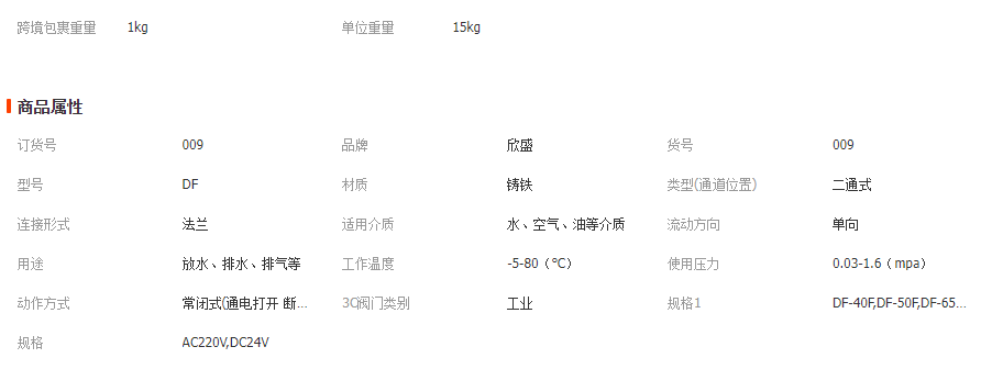 DF-40F 50F 65F 80F 100F 150F系列法蘭鑄鐵液用大口徑電磁閥 1個