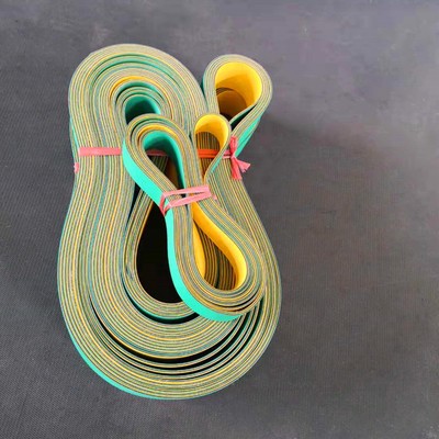 片基帶屬于平面高速傳動帶,通常片基帶中間有尼龍片基層,表面覆蓋有橡膠、牛皮、纖維布;分為橡膠 尼龍片基帶和牛皮尼龍片基帶。帶厚通常在0.8-6mm范圍。尼龍片基帶的材料結構創新較之傳統的 帆布傳動帶和三角帶具有:拉力強、耐曲撓、效率高、噪音小、耐疲勞、耐磨性能良好、使用壽命長等優點。 產品用途:適用于傳 動機構緊湊、使用線速高、速比大的場合。如:卷煙、煙機、造紙、印刷、紡 織機械、暖通設備、金屬設備、自動販賣設備及軍工等行業。也有用于電子行業基板線、SMT設備、電路 板輸送等。