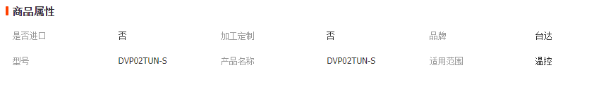 詳細信息 商品描述 臺達2通道輸入溫控模塊 型號:DVP02TUN-S 4信道數(shù)字信號輸出,電壓脈波輸出,24VDC,300mA ======================================= 實物圖: 參數(shù): |