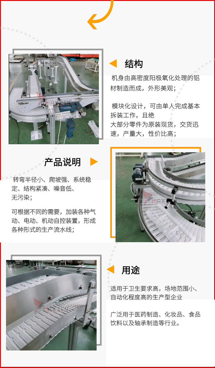 齒鏈輸送機食品級柔性鏈板輸送機流水線龍骨鏈輸送機轉彎鏈板機電議