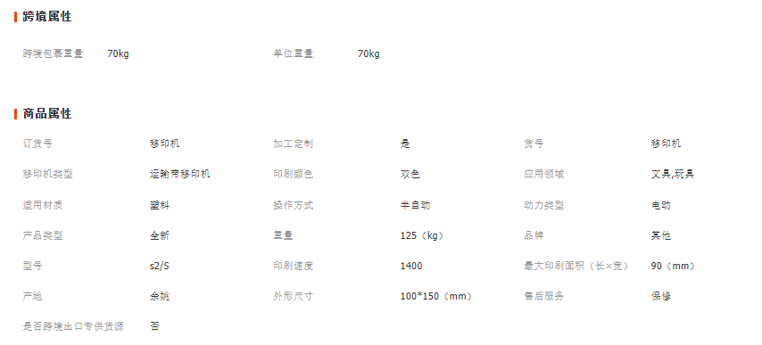 產品參數如下: