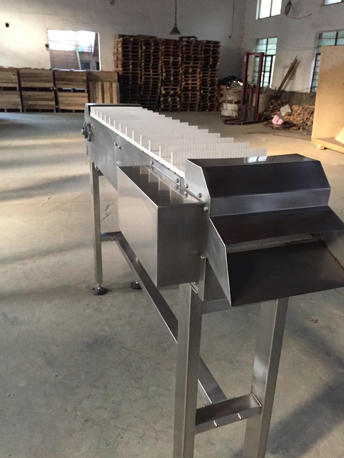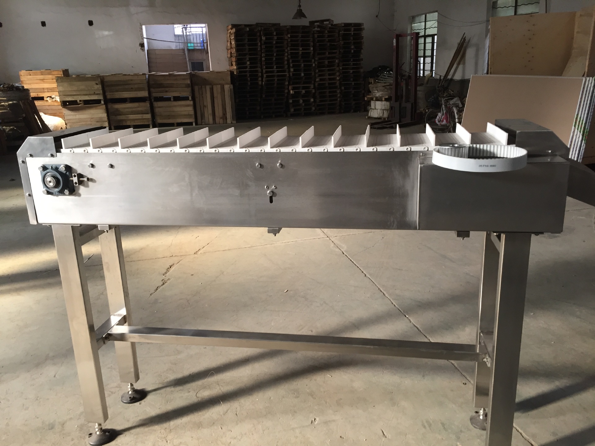 鏈輪驅(qū)動,傳送平穩(wěn),不易跑偏。
