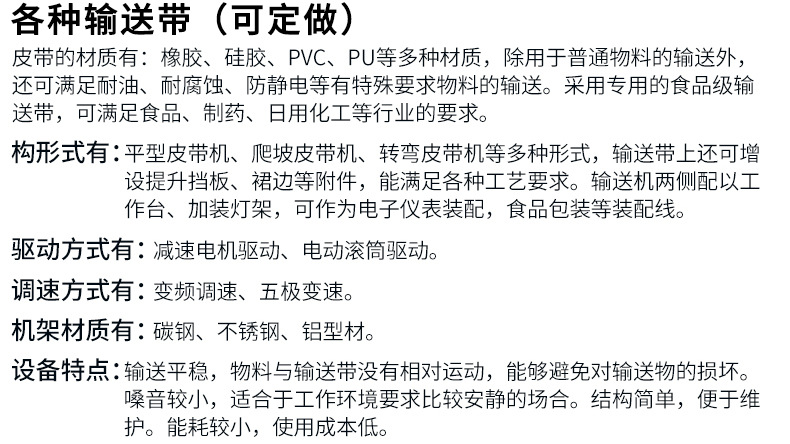 輸送速度:一般為1-12M/min;有可根據用戶需要采用調速或定速
