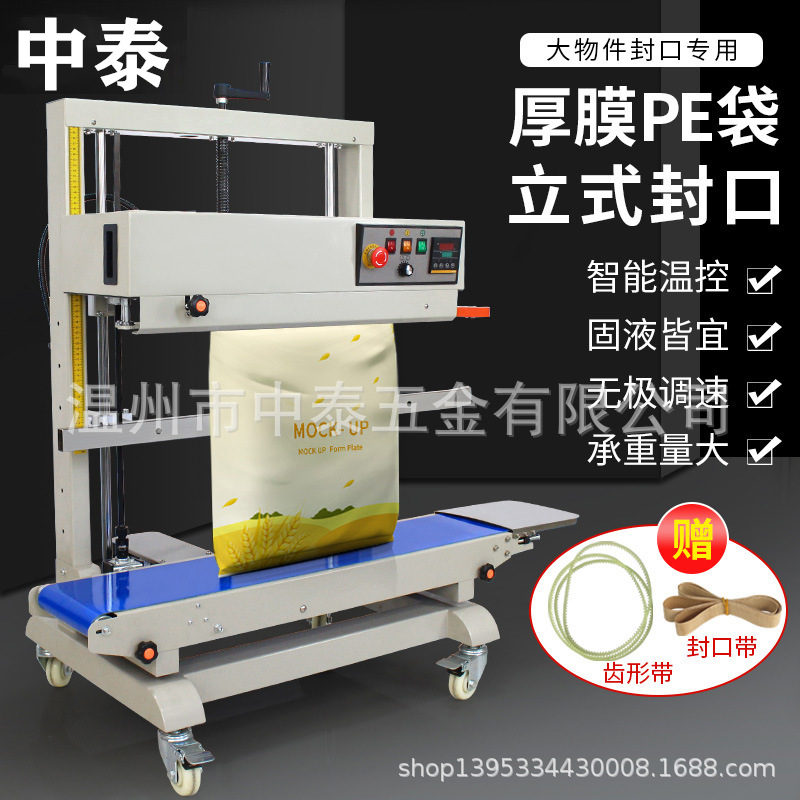 中泰FRD-1200V立式封口機PE袋厚袋墨輪印字連續商用大米袋封口機