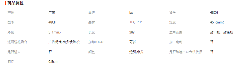 詳細信息 ★★★★★重要提醒: 由于近期原料價格浮動較大,導致產品價格有所波動,因此網上價格僅供參考,如有疑問請與店主聯系,謝謝!! 產品信息: 【顏色】透明 米黃 【規格】45mm*30m 【肉厚】5mm 【包裝】180卷/箱 【特點】高粘、不易斷 長度足、材質好、拒絕偷工減料!