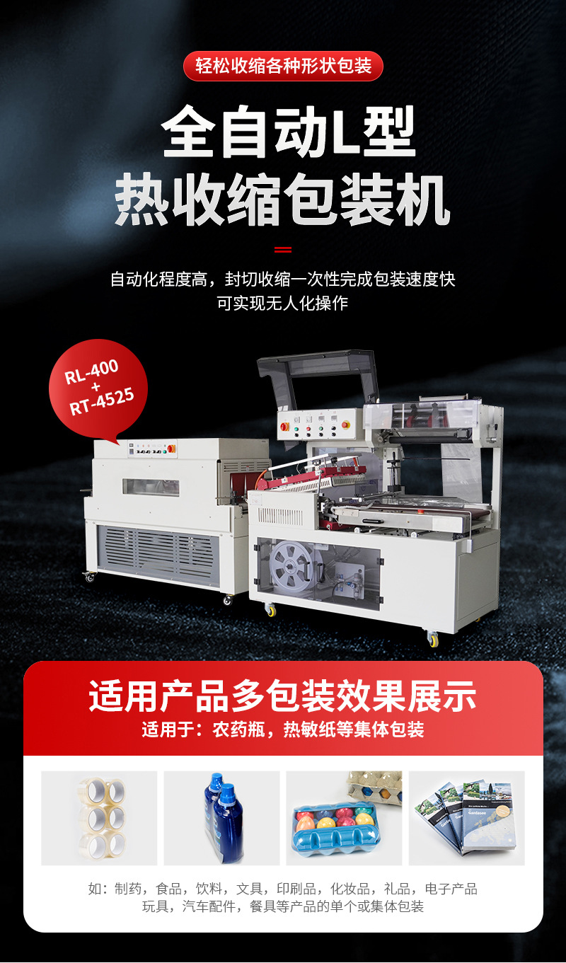 全自動L型熱收縮膜包裝機 POF膜紙箱塑封打包機圖書禮盒塑封機