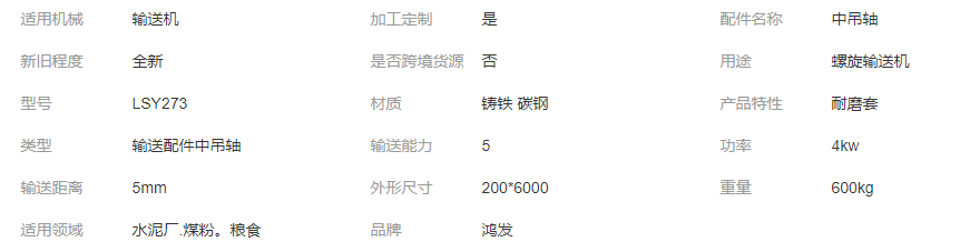 LSY273U型螺旋輸送機中間吊軸 中吊支架鴻發機械供應