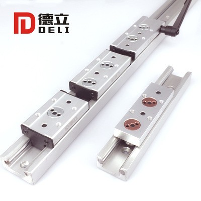 雙軸心導軌直線導軌有很多的優秀特點,如果客戶絕對導軌滑塊的松緊度不滿意時,可以自行調節,調節簡便,可自行用卡鉗夾住滑塊上的偏心輪,用內六角小扳手松掉偏心輪其中一個孔里的機米螺絲,然后用卡簧鉗轉動偏心輪,調節到想要的順滑度時,將機米螺絲扭緊即可。1.可調式預壓,,偏心螺母設計,調節簡易,可達零間隙。2.本體可代替基面安裝,磨損零件可替換,降低成本。3.滑輪設計適用于高灰塵場合,高速度。低噪音等特點。4。高重復定位精度,高平行精度,誤差為正負0.02MM。5,零件磨損可跟換,減少材料成本,減少產品價格,降低產品替換費用和時間。什么是雙軸心線性模組?普通說法,兩端鑲光軸,滾輪軸承在光軸上走直線運動的就叫雙軸心線性模組,這種模組的優勢就是順滑、靜音、防塵、高速、為什么這么說,就像汽車的輪子在路上跑,路上的顆粒粉塵都不會阻止它的運動,雙軸心線性模組就是這樣的原理,滾輪的結構就和輪胎是一樣的道理,在光軸上做往返運動時,雙軸心直線滑塊不會出現卡死的狀況,這樣就可以達到防塵、高速、順滑、靜音的效果。? 雙軸心線性模組也叫滾輪導軌,高速導軌,線性模組,直線模組。根據用途不同,也叫激光機導軌,碼坯機導軌,印刷機導軌,打標機導軌,抽屜滑軌本公