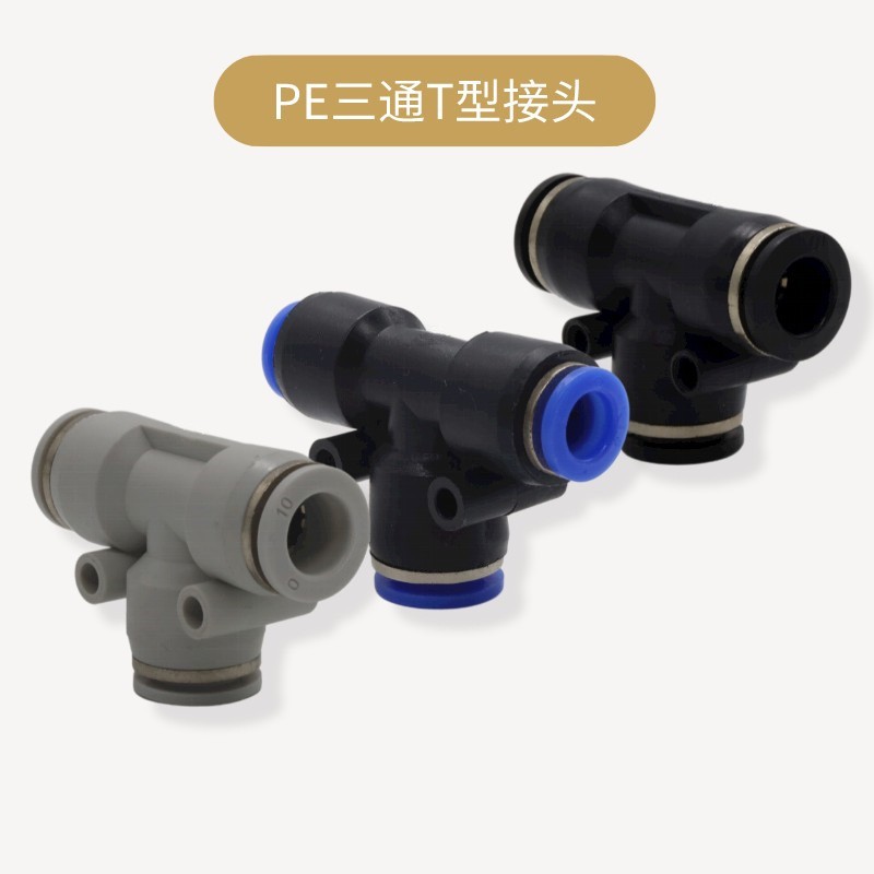 T型三通PE4 6 8 10 12空壓機(jī)氣動(dòng)氣管塑料快速插快接接頭黑白藍(lán)色