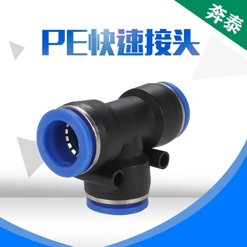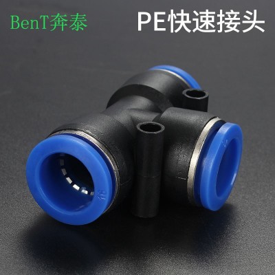 PE接頭氣管快插快速三通T型三頭通pu管接頭PE4 6 8 10 12廠家直供
