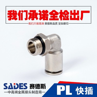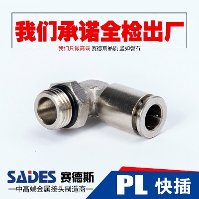 廠家直發快插銅鍍鎳PL G螺紋M牙直角外牙彎頭快插氣動快速快插
