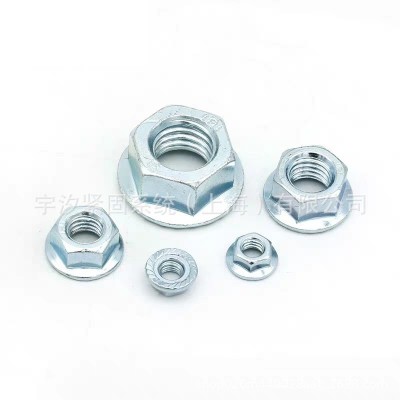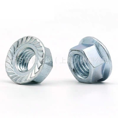 M3M4M5 DIN6923帶齒六角法蘭面螺母三價環保藍白鋅8級法蘭螺帽