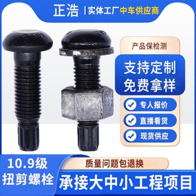扭剪式高強(qiáng)螺栓 10.9級(jí)建筑工程橋梁廠房達(dá)克羅圓頭螺絲 扭剪螺栓