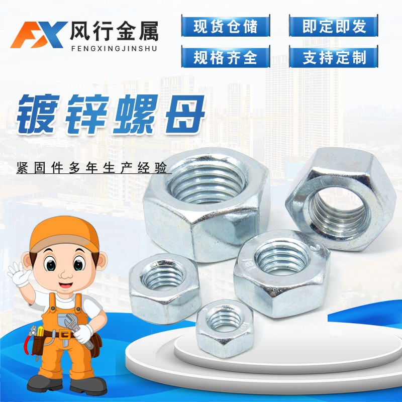 鍍鋅螺母 本色六角螺母 藍(lán)白鋅螺母電力光伏配件熱浸鋅螺帽