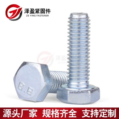 30栓 外六角鍍鋅螺栓 藍(lán)白鋅外六角螺絲 4.8級半牙全牙螺栓30栓