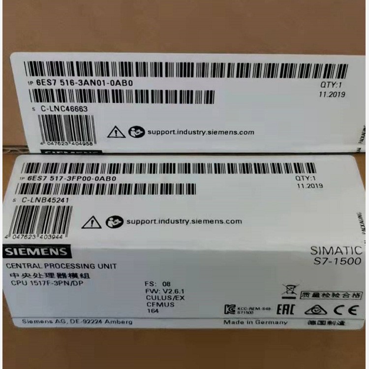 SIMATIC S7-1500, CPU 1517-3 PN/DP, 中央處理器,帶 內存 2MByte,用于 程序和 8MByte 用于數(shù)據(jù), 第 1 個接口:PROFINET IRT 帶雙端口交換機, 第 2 接口:PROFINET RT, 第 3 接口:PROFIBUS, 2 NS Bit-Performance, 需要 SIMATIC 存儲卡