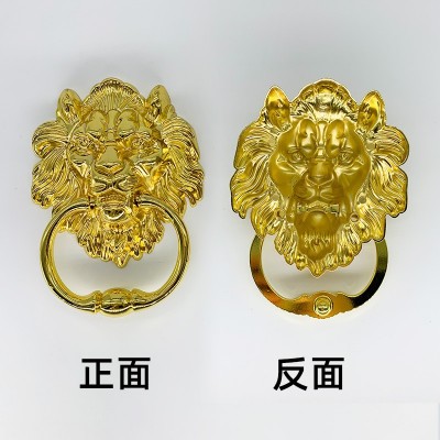 獅子頭大拉環(huán)新中式仿古銀色鋅合金大門(mén)拉手虎頭門(mén)拉環(huán)木門(mén)把手 1套