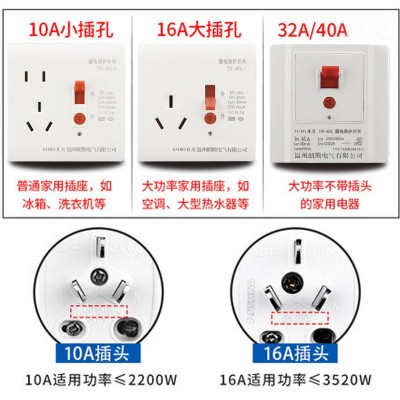 漏電保護(hù)插座86型10/16A熱水器2P/3P匹空調(diào)漏電保護(hù)器開