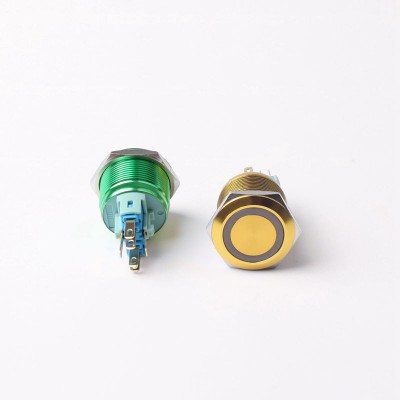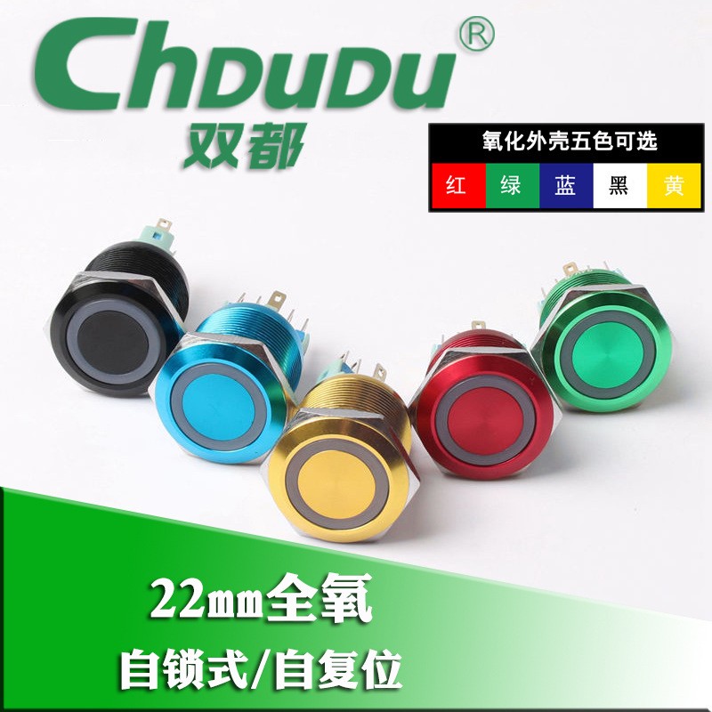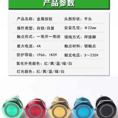 22mm金屬開關(guān)按鈕 LED環(huán)形燈氧化彩色圓形防水自鎖自復(fù)位按鈕開關(guān)