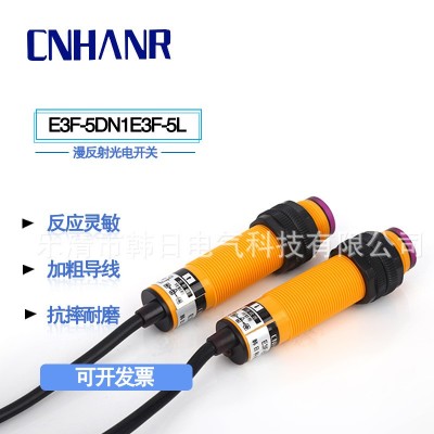 批發E3F-5DN1/E3F-5L直流12-36V三線NPN常開對射型5m光電開關