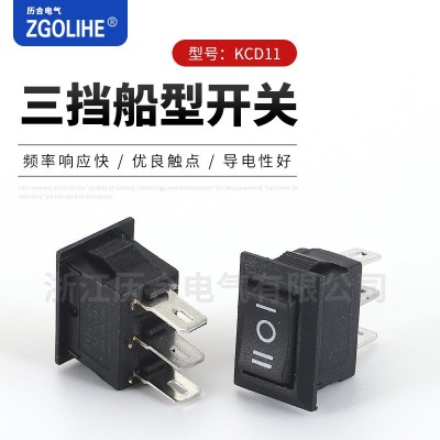 KCD11三腳三檔船型開關(guān) 10X15方形撥動開關(guān) 開口9X13