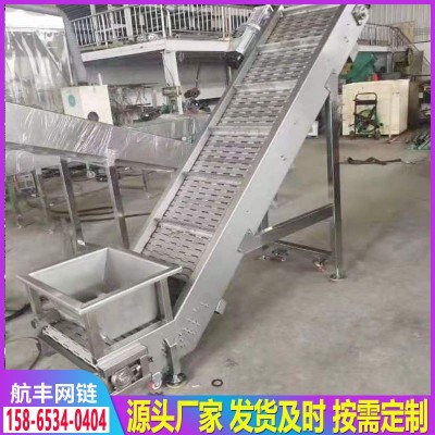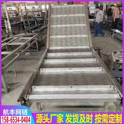 不銹鋼鏈板輸送機 啤酒罐頭傳送帶 食品沖孔帶擋板物料爬坡輸送機
