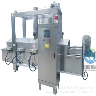 全自動電加熱油炸機入料網帶式運輸,輸送速度可根據產品種類及油炸時間變頻調速,入料口采用隔熱材料包裹,充分保證工人的操作安全,防止燙傷。采用電動提升系統,取代電動葫蘆,提升過程中運行平穩,方便工人對機體內進行清理和維護,自動排油煙系統,保證車間內有一個良好的工作環境。恒溫連續生產,保證食品的炸制均勻。