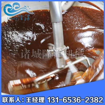 該設(shè)備主要由鍋體、架體、攪拌系統(tǒng)、加熱系統(tǒng)、調(diào)速傳動(dòng)裝置、攪拌軸、鍋體翻轉(zhuǎn)系統(tǒng)等組成,采用加厚304不銹鋼板模壓成型的橢圓形的不銹鋼鍋體,采用燃?xì)饧訜嵝问剑瑪嚢璺绞讲捎锰厥獾膬A斜式傳動(dòng),使用的行星式攪拌器與鍋體充分接觸,實(shí)現(xiàn)傳動(dòng)公轉(zhuǎn)與自轉(zhuǎn)的不整數(shù)傳動(dòng)比,使鍋內(nèi)無攪拌死角。使用先進(jìn)的傳動(dòng)與密封結(jié)構(gòu),使傳動(dòng)部分與鍋內(nèi)潔凈、衛(wèi)生。采用變頻調(diào)速動(dòng)力,運(yùn)行更平穩(wěn)。采用液壓升降,翻鍋運(yùn)料,免拆裝攪拌器,節(jié)省人力,降低勞動(dòng)強(qiáng)度,是性能優(yōu)良的食品加工設(shè)備。