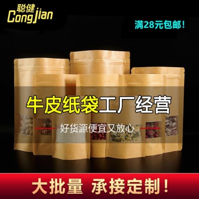 廠家批發(fā)開窗牛皮紙袋食品包裝茶葉袋瓜子紅棗密封口袋定制自封袋